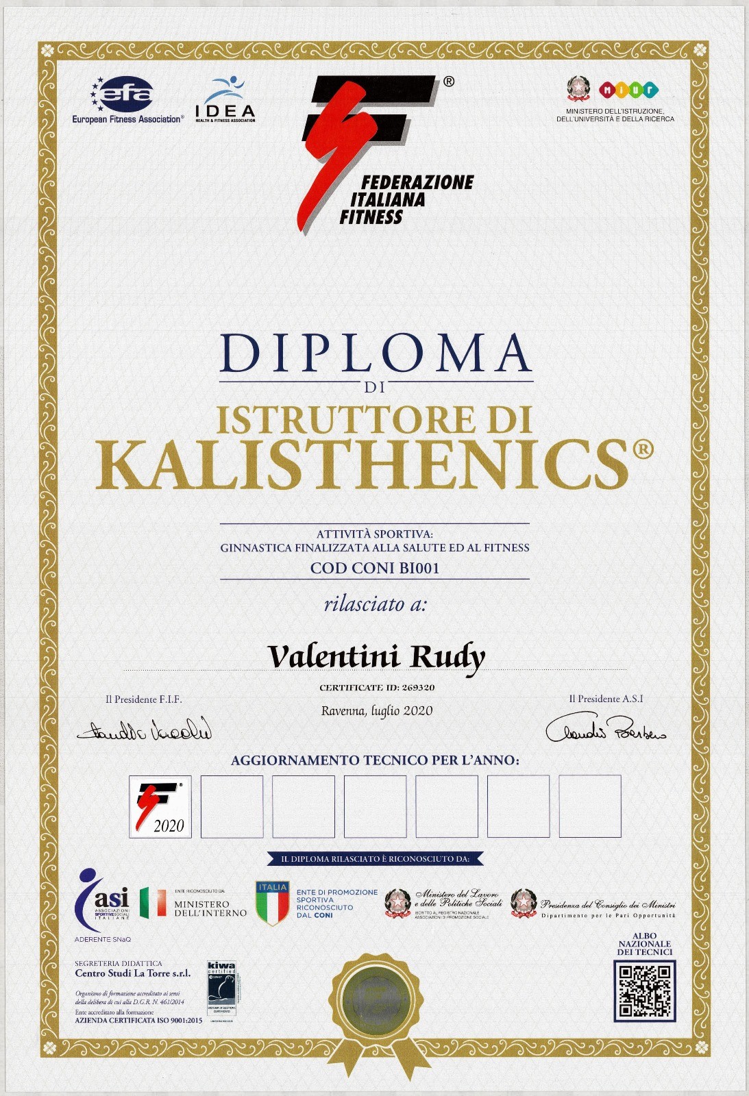 Diplomadi istruttore di kalisthenics 2° livello