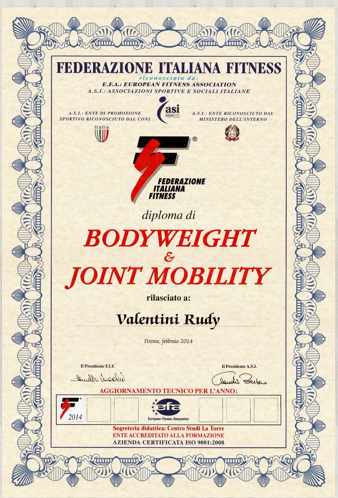 Diploma di body weight e joint mobility