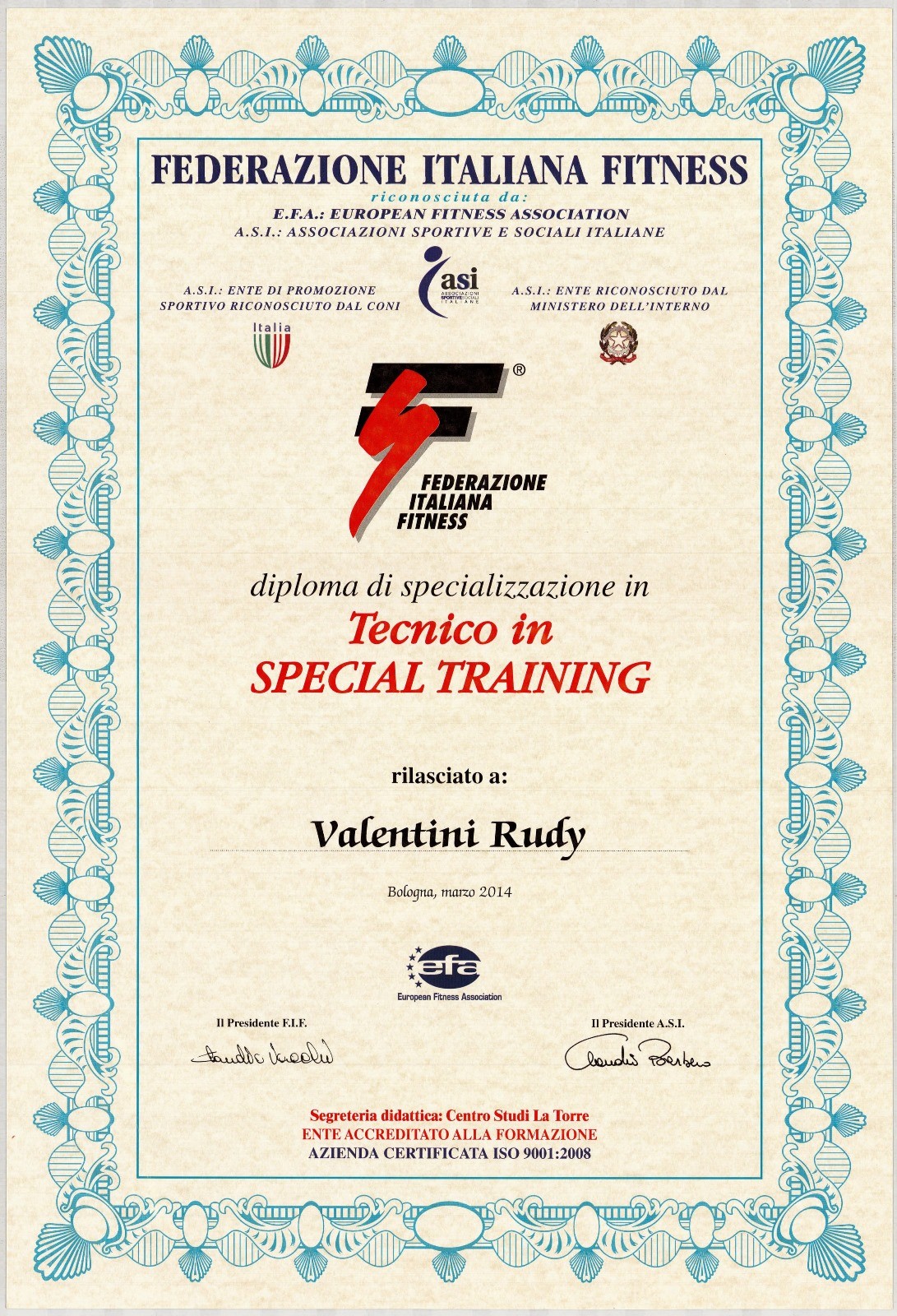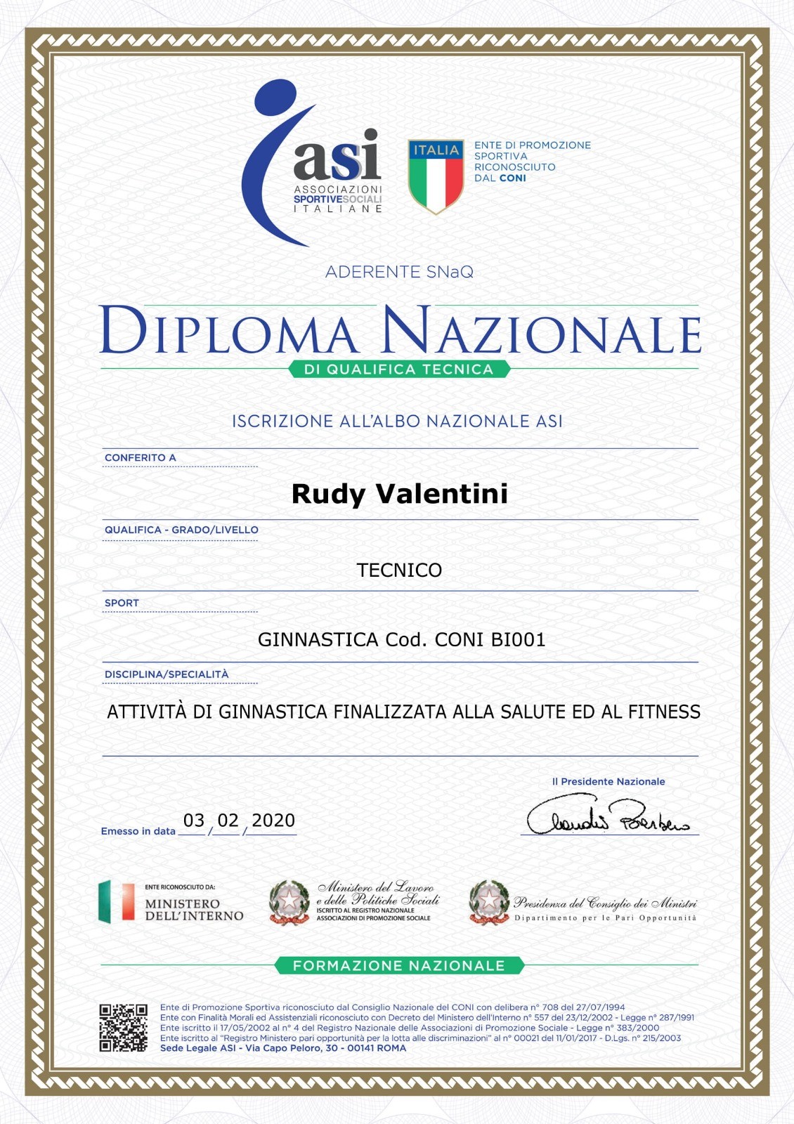 Diploma tecnico di ginnastica finalizzata...