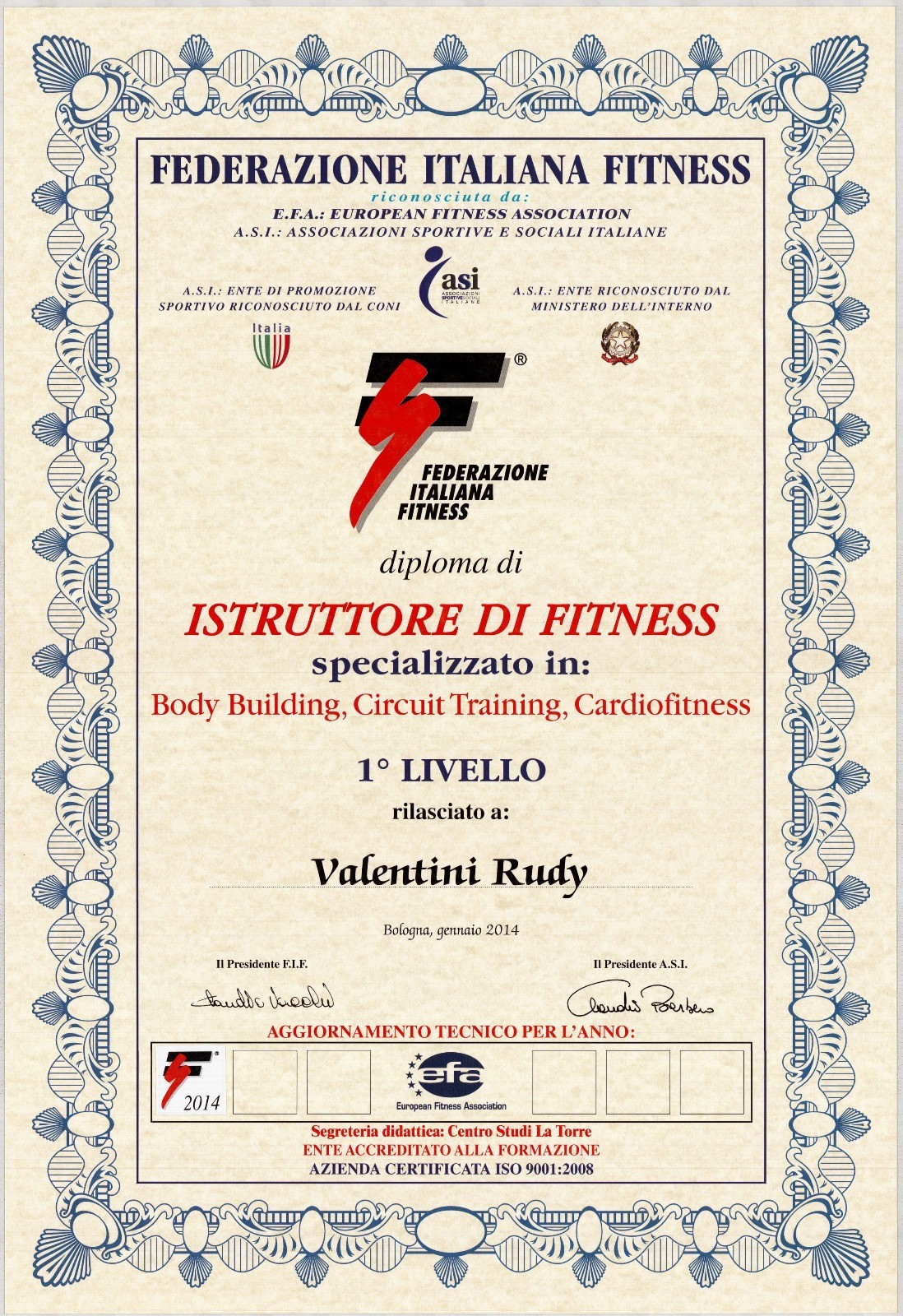 Diploma istruttore di fitness