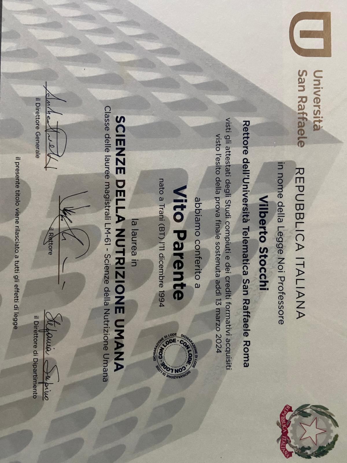 Laurea in scienze della nutrizione umana
